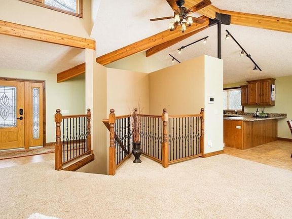 So much new...beautiful new kitchen with gas cooktop & newer appliances, upper level has new hardwood trim & beautiful doors, love the artitechual beams & vaulted ceilings, dining off kitchen with patio doors to 1 acre yard & shop. Walkout lower level with wet bar. Shop has attached kennel & 2 skylights. 2 wells on property.