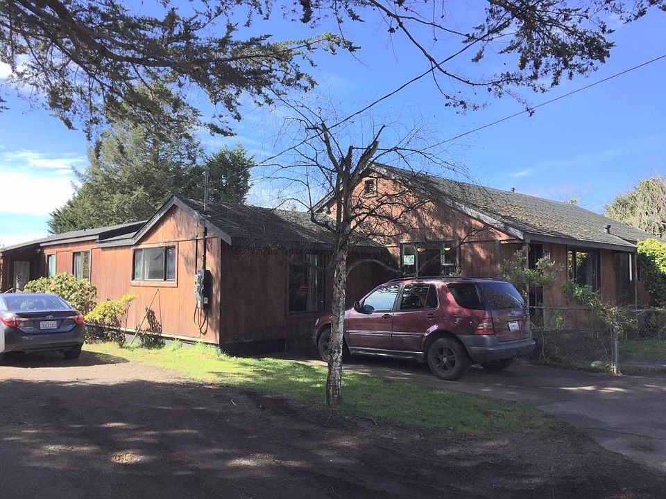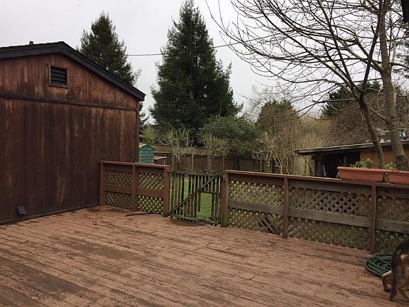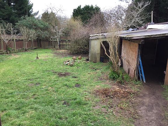 This home has loads of potential to make it yours. Kitchen has concrete counters, bamboo flooring in the living room.There is a separately metered apartment with forced air, gas stove, laundry hook ups, and a nice view of the back yard. The big lot has fruit trees, out buildings and room for more!