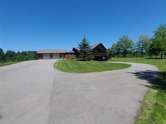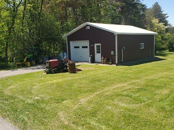 Stunning home with no stone unturned (check the professional landscaping) on park like property with over 22 acres is available now!! The long, paved driveway will take you on a country ride through the trees as you pull up to the home, with an awesome barn/outbuilding and wrap around driveway for next level convenience. Stunning landscaping adorn the front of the home, with an incredible balcony deck to take in all the sights and sounds of the country. Walking the property, you will finding hiking trails, expansive and well maintained grounds, a greenhouse, playhouse/shed and playset all included! The home itself is an incredible offering of space and modern functionality, with 2 bedrooms and 2 full baths on the first floor. Your kitchen/living room combo affords easy entertaining, and is perfectly appointed with an island for food prep or dining. Cozy, large family room with wood burning stove/oven and an office space round out the first floor. Downstairs you will find an incredible floorplan that includes 3 bonus rooms (one of which was set up as a classroom for home school) full bath and a walkout to the front patio.