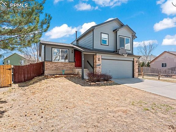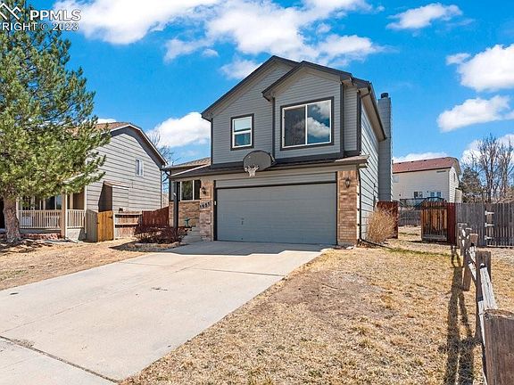 Welcome to this stunning 4-level home in the sought after Cheyenne Meadows South neighborhood. Just minutes to Ft Carson, schools, dog park, and shopping. Immediately upon entry you will enjoy wood floors that flow through this entire level, vaulted ceilings and a large window to let in all the gorgeous natural light. This space would lend nicely to an office/library or sitting room. Follow the wood floors to the kitchen where you will find a bay window in the dining area of the eat-in Kitchen. The Kitchen has a gas range, tile counter tops, vaulted ceilings, recessed lighting and tons of cabinet space! There is a window over the sink that looks out to the backyard and large deck. The lower level has an incredible living room with wood flooring, wood burning fireplace, gorgeous built-ins and walk-out to the large backyard. The basement has even more living space(which could be converted into a 4th bedroom as there is a spacious closet already present) and a rough-in for a 3rd bathroom. The upper level hosts all 3 bedrooms, a full bathroom and the laundry hook-ups. The primary bedroom has 2 closets and its own private 3/4 bath. Take a peek at the Front Range from the large window. The full bathroom on the upper level has a skylight for even more natural light! If you are an outdoorsy person or host with the most, the backyard is the place to be! There is a wood deck that would make a perfect place for a BBQ; with more mountain views! There's also a patio area and a storage shed for your seasonal items! Don't miss out on making this house your home!