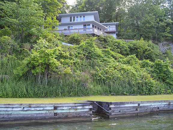 Year-round lake living where function meets design. Re-built in 1987 by then owner Schickel. Tucked into a cliff w/private road down to beach featuring a boat launch, dock built by Knewstub & boat house. 245 feet of lake frontage w/grassy picnic area w/deep, clear water; great swimming, boating & fishing. Multi-level balconies & decks w/beautiful views. Contemporary kitchen perfect for gatherings & entertaining. Drive to door. Many updates & improvements. Wine Country! 15 minutes to Cornell/IC.