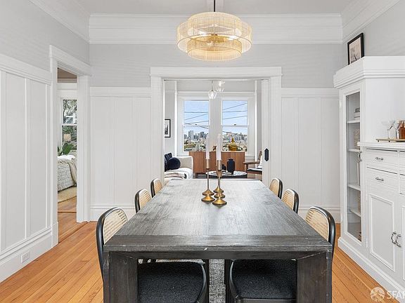 Welcome to 1651 Treat, set on the prime Bernal North Slope just off Precita Park. This tastefully updated Edwardian blends classic craftsmanship with easy modern living: 3 bedrooms, 1 oversized bath and sweeping views from the living room, primary, and top-floor third bedroom. The bright skylit kitchen features marble counters, abundant storage, and a classic range. A formal dining room opens to a sunny deck that steps down to a south-facing, leveled backyard, ideal for everyday lounging or effortless entertaining. Original details shine throughout: elegant wood floors, box beam ceilings, wainscoting, and pocket doors, all anchored by panoramic outlooks from downtown to the Marin Headlands. Practical perks include a one-car garage, solar panels, EV charger, generous storage, laundry, and an additional flex space to create & tinker. Set on an RH-2 lot with rare second frontage on Ripley, the property offers meaningful future upside. The location is a commuter's dream with close access to 101 and 280, plus proximity to BART and shuttle routes. Moments to Precita Park and neighborhood cafes, this home delivers daily ease, enduring character, and a front-row seat to the city's changing light.