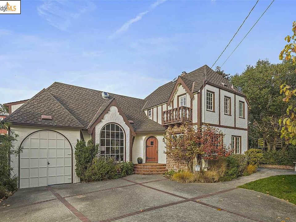 In the heart of the lovely Thousand Oaks neighborhood is this idyllic home and garden.  The Tudor Revival style, edging towards Storybook, is a delight for the eyes and heart, radiating a casual comfort.  The period accents include open beam ceilings in the living room and dining room, leaded glass windows, arched doors & windows, and a Juliette balcony in the main bedroom. The finished room over the garage would make a great office or craft/workout/zoom room. The garden is a thing of beauty - a "certified wildlife habitat" with front lawn, side and back patios. A path down to the stream grotto adds to the romance of this special property. From there you can see the substantial girders supporting the picturesque bridge.