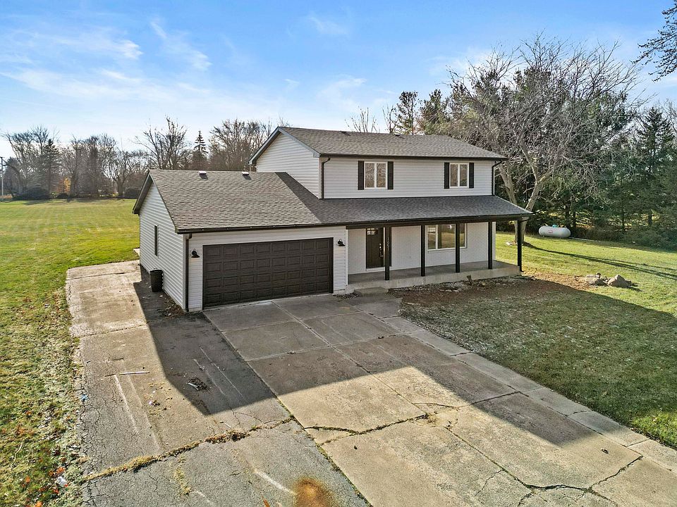 A RARE FIND! Your search for a new house & LAND ends here. Completely remodeled inside & out, this TURNKEY property features 4 bedrooms, 3 bathrooms, & spans just under 2,000 sq. ft. A large, COVERED front porch offers a warm welcome, leading you inside where refined, contemporary design awaits. Luxury vinyl flooring enhances the open-concept layout, seamlessly connecting the family room, living room, dining area, & kitchen--perfect for both entertaining & relaxation. The kitchen is a true showstopper w/ sparkling QUARTZ countertops, an abundance of soft-close cabinets & drawers, & brand-new STAINLESS-STEEL appliances. Primary bedroom offers ample space w/ double closets & a chic ensuite featuring a custom tile shower. Upstairs, the additional bedrooms are roomy w/ oversized closets, while the full bath showcases a stylish vanity & handcrafted tile work. Enjoy peace of mind w/ fully updated features, including a new ROOF, siding, garage door, mechanicals (FURNACE, water heater), washer, dryer, & more! The 2-car garage includes a built-in workspace for home projects, & a backyard shed adds extra storage. Situated on a 1.65-ACRE lot, the vast yard provides limitless potential--build a pole barn, have room for all your outdoor activities, enjoy summer nights on the patio, or even SUBDIVIDE for an additional lot w/ access from Grant St. Ideally located just minutes from downtown Lowell, schools, shopping, & the expressway, this is the perfect next home to make YOURS. Schedule a showing TODAY!