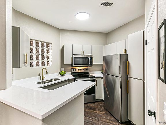 This stunning two bed, two full bath home is a must see! Gorgeous renovation thru-out this light & bright home, just steps from the amazing Highline Canal Trail, includes a private extended-length garage & additional private parking space. Beautifully renovated kitchen w/ white quartz countertops, dual undermount sink, breakfast bar, new bronze fixtures, new stainless steel appliance package. Expansive living room w/ open design to dining/kitchen. Relax by the beautiful gas fireplace or step through sliding glass doors on to the large private covered balcony- the perfect space for outdoor entertaining, plus secure private storage space. Huge master bedroom w/ large walk-in closet w/ custom shelving system, wonderful mountain views. Spectacular master bath completely renovated w/ new high-end vanity with dual undermount sinks & marble countertop, custom framed mirror, new fixtures, oversized tub, all bathed in natural light. Large 2nd bedroom w/ walk-in closet and a tranquil view of mature pines and maple trees – ideal for a home office. The adjacent fully renovated 2nd bathroom boasts a custom vanity w/ marble countertop, framed mirror, new oversized baseboard, large linen closet & all-new fixtures. Revel in the details, including new designer paint, all new light fixtures/fans (remote), new hardware, new electrical outlets/switches, new high-quality carpet/pad & luxury wood-style floors. The location is unparalleled – just steps from the Highline Canal Trail system, a 70+ mile tree-lined oasis for walking, biking, running, or strolling with your furry friend. Only a mile from the light rail station, Aspen Grove retail/entertainment village, and a short drive to historic Downtown Littleton offering endless retail/entertainment/restaurant amenities. Pinnacle at Highline is a quiet, nature-filled community providing a relaxing lifestyle with access to a community clubhouse, fitness center, resort-style pool, and hot tub. Your peaceful perfect home awaits!