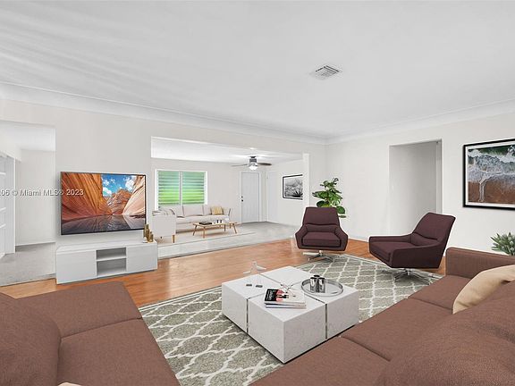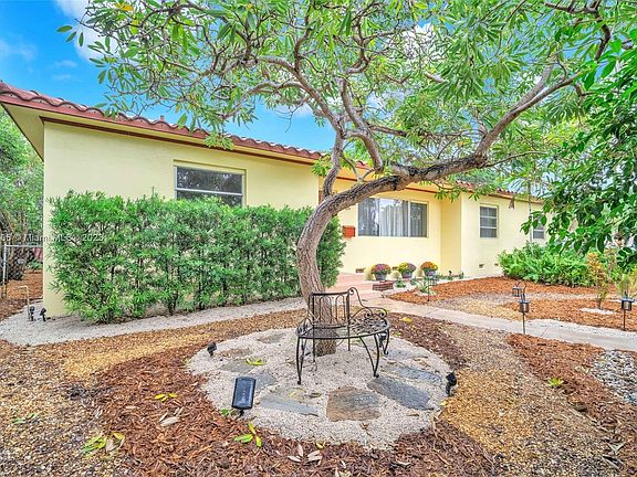 This Hollywood gem boasts over 2,000 sq ft of space with gleaming wood floors throughout. The spacious living room and dining room combo feature charming round molding and the Florida room fills the space with natural light. There's an additional bonus room that can serve as a 4th bedroom, den, or office. The kitchen is a delight, featuring quartz countertops, a double sink, wood cabinets, and a stylish tile backsplash. An updated primary bathroom with porcelain tiles and glass accents in the walk-in shower. A carport for one car and ample parking at the back, a fenced yard, and room for a pool add to the property's allure. The laundry room comes with a newer washer and dryer, and a new water heater. Landscaping adorned with stones on walkways and a 10X20 shed for extra storage.