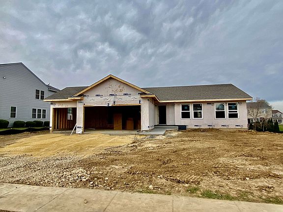 New Construction open floor plan has 1580 sqft of living space nicely appointed with upgrades and amenities! Great Room with gas fireplace open to Kitchen and Dining! Kitchen will have granite counters, stainless steel appliances, center island with snack bar. Master Bedroom with full ensuite and walk-in closet. Two additional Bedrooms and hall Bath. LVP flooring, plush carpet, 3 car attached garage ,full basement with partial exposure for potential expansion! *A comprehensive 1 year Hole Builder Warranty included.* *All room dimensions approximate.*