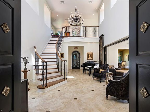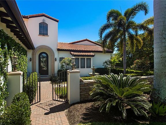 H.14317 - Elegance & luxury abound in this brilliant two-story home situated on a private end-cap lot surrounded by lush green landscape. Gated courtyard with espalier & fountain accents, sets the tone for elegance as you enter the grand foyer. Swarovski crystal chandeliers and pendant lighting soften the corridors adding elegance throughout the home, cascading over tile laid on the diagonal & rich wood floors. Designer inspired floorplan offers a temperature-controlled wine room, formal dining room & an onyx appointed bar. The gourmet kitchen boasts custom cabinetry, Wolf, Sub-Zero & Miele appliances and walk-in pantry. Master retreat boasts cathedral ceilings, sitting area, outdoor access, accompanied by a luxurious master bath with dual sinks, walk-in shower & soaking tub. Covered summer kitchen features a granite topped bar, sink, Sub-Zero refrigerator & built-in Wolf grill. Tropical outdoor living w/open-air, natural gas heated pool & spa w/palm trees punctuating the travertine paver pool deck. 3-car garage w/built-in cabinetry, epoxy floors & a 20-K stand-by natural gas whole home generator. Open loft upstairs easily converts to a 4th bedroom Plus 1st floor hobby/craft room.