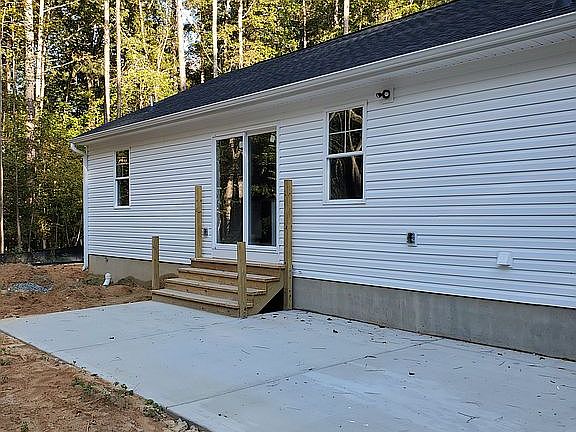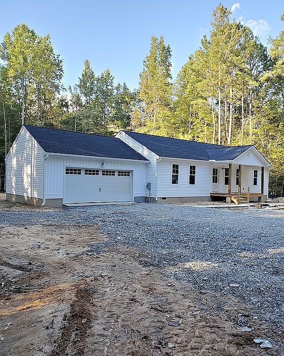 Move-in ready one level, open floorplan, split bedroom ranch on a very private 4.52 ACRE agriculturally zoned lot on a quiet dead end street. Located about 700' off the road, you can't see any neighbors from this house in it's beautiful wooded setting & big level back yard. Features you'll love about this easy maintenance vinyl sided home include a vaulted ceiling greatroom & eat-in kitchen, open floorplan, Luxury Vinyl Plank flooring in the living area, kitchen, primary bedroom & hallway, white Shaker style cabinets & Granite countertop an island, a pantry, SS appliances include glass top stove, microwave & dishwasher, recessed lighting + glass doors to a 24'x12' concrete patio. The Primary bedroom & laundry room are on one side of living area and the 2nd & 3rd bedrooms w full bath are on the opposite side for greater privacy. The primary suite has a huge walk-in closet, 32" doorway + master bath w/ a double sink vanity, tub, window & linen closet. The 24'x24' attached garage has an auto opener & just a few steps up to the 15'x7' laundryroom w/ W&D hookups & window. There is a conditioned crawl space too! NO HOA fees! Just 5 min to Seven Springs Marina on beautiful Lake Chesdin.