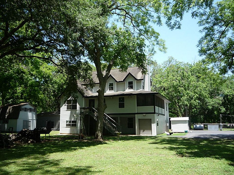 Gorgeous 4-5 bdrm 3 1/2 ba THREE story home Nestled Amongst Towering Pecan & Oak Trees. Horse Ready Property Includes Horse Stalls + Auto Horse Walker. Pond is Stocked w/Catfish, Perch, & Bass. Get Lost in this HUGE Home w/Motorcycle Room, Island Kitchen, 2'' Faux Wood Blinds, 2 Water Wells, 30KW Generator w/500 Gal Diesel Tank, Asphalt Driveway, Remote Gate Entry, Screened in Patio Overlooking the Pond, 2 Story Storage Shed, R/V Cover, and Too Many Other Amazing Features to List! YOU MUST SEE!!