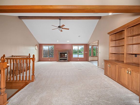 . This ranch on a full basement sits on a beautiful pond lot in NW Allen Co Schools. Beautiful curb appeal w/brick front, NEW WINDOWS, new shake siding; new garage & front doors. The large open great room w/cathedral ceiling & gas firieplace is warm & inviting. All 3 bedrooms are on the main floor as well as an extra office/den. The master has 2 closets, a custom tile shower & makeup vanity. The kitchen has granite countertops, solid wood cabinets, pantry w/custom shelving & stainless appliances. Off the dining area is a fabulous 3-season room w/custom shades & vinyl plank flooring. From here walk out onto the maintenance-free, pergola covered deck to enjoy gorgeous views of the 6-acre pond. Your water front has been wrapped w/rock & a seating area added for a perfect fishing spot! A stamped patio off the walk-out basement leads to nearly 1500 sf finished living & storage space including a living room, rec room, wet bar, storage room & laundry. Other extras: custom blinds, Guardian Security System & Nest thermostat. Beautiful home!