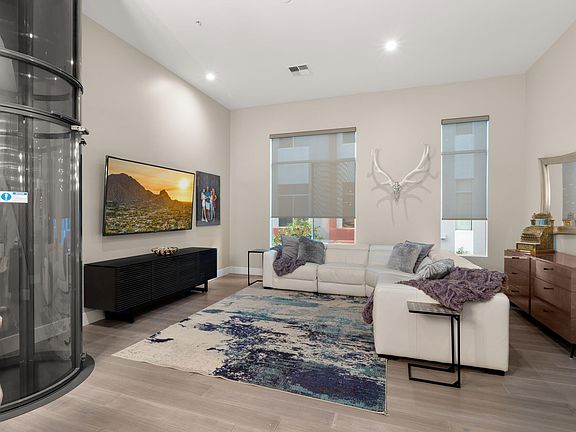 Gorgeous Towhhome in the Green Certified SOHO Scottsdale. This home has 3 spa like Ensuites with custom closets in each & 2 add'l powder rooms. The kitchen is designed to entertain with 3 ovens, beverage fridge, X-large island & lots of beautiful cabinetry. The first floor is zoned optional commercial and can be used for business, home office, exercise room, 3rd Bedroom. The top floor is a Great Room that leads to the roof top patio where you can take in breathtaking views of the McDowell Mountains while soaking in the hot tub. Tons of upgrades throughout including a pneumatic elevator that runs through the entire home. Community hosts Sugo Bistro, Roots Hair Salon, Physical Therapy, art studios & more. Convenient to the 101, Kierland Commons, Scottsdale Quarter, West World, and WM Open.