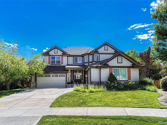 Immaculate Infinity Home in prime location in sought after Stonegate neighborhood. Sitting on a huge cul-de-sac lot backing to a mature greenbelt offering ultimate privacy and gorgeous views. This home has been customized to make it truly one of a kind and offers classic warmth with a modern flair. Immediately at the formal 2 story entry you will see the abundance of character present in this home. The refreshingly different floorpan flows from the front sitting area (could be dining room) through the butlers pantry to the huge eat in kitchen beyond. The bright chefs kitchen offers loads of cabinet storage, gas range, double ovens, large center island, & built in desk. Adjacent is the cozy family room with modern fireplace & big windows showcasing the backyard waterfall feature. One of the unique attributes of this home is the cool mid level office which has been enclosed to offer additional privacy. Upstairs you will find the luxurious primary retreat. This room has big picture windows, vaulted ceilings, a large walk in closet & updated bath with granite counters, vessel sink, custom glass shower, free standing corner tub. There are 3 additional bedrooms upstairs: 2 good size rooms that share a recently updated bath & a 3rd guest suite with custom stone wall, private balcony with French doors & en-suite bathroom. Beautifully finished basement featuring a 5th bedroom, big 3/4 bath, wet bar for entertaining, "theater room", big game room & additional storage. Split garages each with private entrance. Just off the garage is a handy mudroom with bench & cubbie storage & a spacious laundry room with utility sink. The true wow factor of this home is the parklike backyard with big covered patio, gazebo, hot tub, water feature, mature landscaping & luscious open space beyond. Stonegate community offers the best amenities in all of Parker including 5 country club style pools, 2 clubhouses, 2 sets of tennis courts, multiple parks, miles of trails & easy access to I25 & E470.