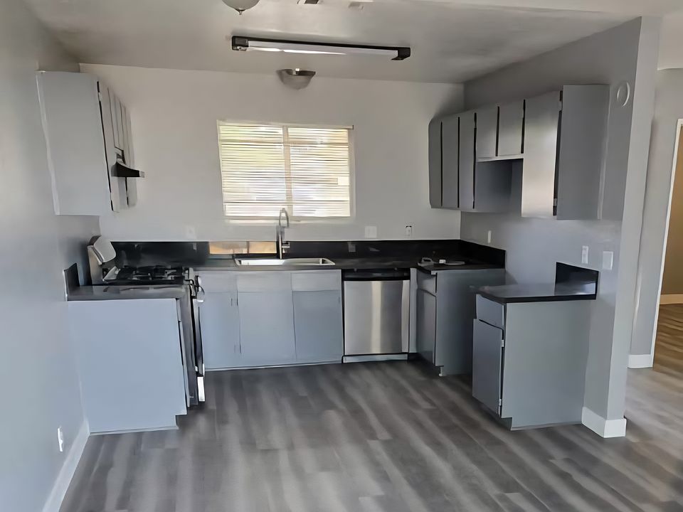 new paint, new vinyl flank floor, own patio back yard, laundry hook up in 2 car garage Owner pays for water and trash. renter responsible for gas and electric