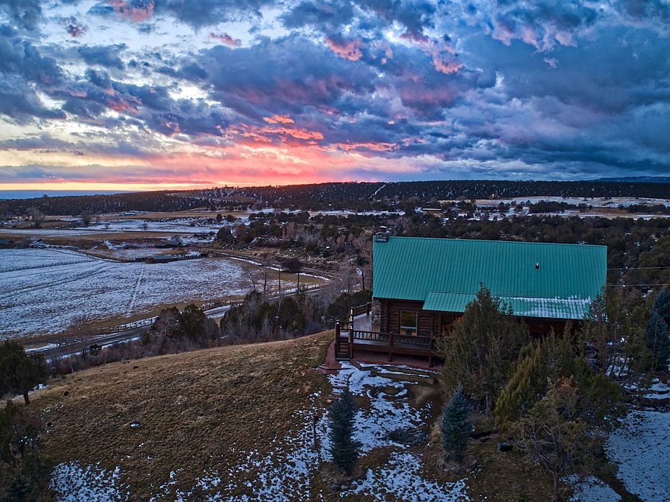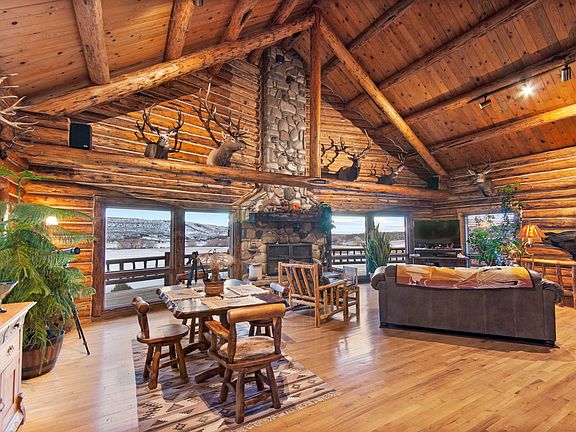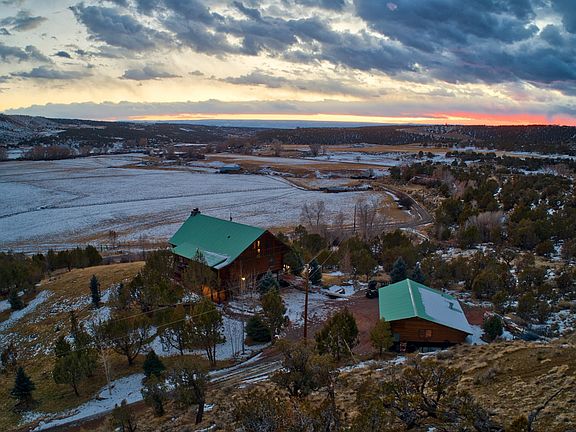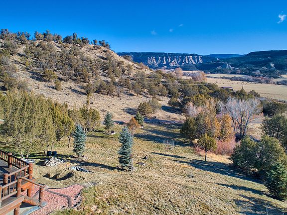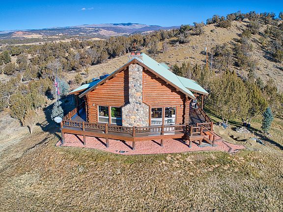 Colorado Custom Log Home. Turnkey ready! Attention to detail has been added to every room of this magnificent log home. Custom woodwork, hard wood oak flooring and hand cut stonework accentuates the beauty of this "custom hand hued" log home. Upper level offers "open concept" to the great room, kitchen, dining, and access to exterior wrap around deck. Perfect set up for entertaining activities. Finished lower level, complete with a custom bar and wood stove offers additional area for family and friends to relax and enjoy. To many upgrades to list, please call for details of all upgrades. Secluded... yet year-round access to the property entrance off Rimrock Road is provided by the county, owners are responsible for driveway access from Rimrock Road to the home. Hill top home location provides beautiful views overlooking the farm county and valley below. Upper Surface Creek Domestic Water Users Association provides domestic water to the home. Electricity, septic, 500-gallon propane tank (leased), internet service is available and soon to be upgraded by local provider. Landscaping consists of natural vegetation of pinyon pines, junipers, sage, native grasses, and low grow wildlife pasture mix of grass surrounding the home minimizes yard work. Wildlife visitors include mule deer, elk, wild turkeys, coyotes, bobcats, bears and small game. The 24' X 24' detached log garage, complete with ½ bathroom, wood stove, 220 electricity, and concrete floor offers a great shop location or opportunity to convert to a guest cabin or studio. Conservation easement on the surrounding properties ensure that neighbors cannot encroach with development. A simply secluded area, along with year-round access, domestic water, electricity, internet service, 3 heat sources (in floor, wood fireplace, wood stove), detached log garage (with potentials), and wildlife outside the front door, makes this a great opportunity. Do not let this one slip away!!