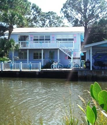 This house is situated on a short canal connecting to the Open Gulf of Mexico that is only a few yards away. The location is quiet and serene on the west side of the island about 2.5 miles from the village. The water side of the cottage has a covered porch/deck with swing, wicker gliders and chairs. Fish from your porch! Then clean your catch of the day at the convenient fish cleaning sink. The down stairs is a 2/1, full kitchen, living room & dining combined.. The upstairs is a 2/1 with open living room, dining & full kitchen with a breakfast bar. Plus a large waterfront balcony the length of the house. Whole house is very tastefully furnished. One car detached garage is a big plus. Live here full time or use as an investment. Currently on a vacation rental program with a following. Make the decision now to get away from the hustle & bustle of big town living to a small quiet fishing village situated out in the Gulf of Mexico. Our traffic jam is getting stuck behind a golf cart.