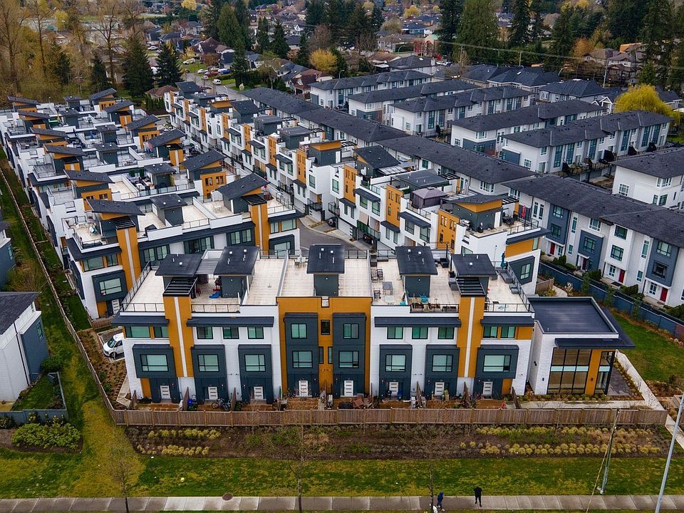 Welcome home to Fleetwood Point! This modern west coast townhome includes 3 bedrooms, 2.5 baths with custom closets and an additional flex room. Large windows fill the home with natural light. Kitchen comes fully equip with with stainless steel appliances, quartz countertops, acrylic cabinets and spacious walk-in pantry. Spacious Living room features a fireplace, Upgrades include laminate flooring throughout the home from developer, AC. Large ROOFTOP PATIO the perfect place to entertain. Double parking garage. Walking distance to schools, shopping, parks and future skytrain.
