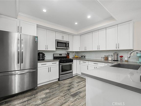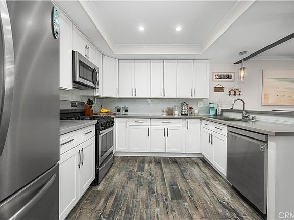 Nestled in the heart of Huntington Harbor, this chic one-bedroom, one-bath condo offers beachside living walking distance to multiple beaches. The open-concept layout is filled with natural light, highlighting designer finishes throughout. The spacious living area seamlessly flows into a modern kitchen, complete with sleek countertops and stainless-steel appliances and breakfast bar. Large interior laundry room off the kitchen. The bedroom offers a serene retreat with ample storage, and the beautifully appointed bathroom is both elegant and functional. Primary has a large walk-in closet. 1 car detached garage with extra storage area and 1 assigned parking spot (space 4). Enjoy the coastal lifestyle in this move-in-ready condo, perfect for relaxing or entertaining. Don’t miss this rare opportunity to own a stylish, updated home in Huntington Harbor. HOA dues include water and trash. This resort like community has two pools, streams, two spas, basketball court, BBQ area and club house.
