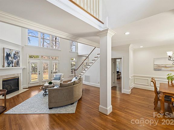Nestled in the Peninsula Golf & Country Club community on Lake Norman, this exquisite 2-story home is situated on a quiet cul-de-sac, this property provides both privacy and convenience, with easy access to world-class golf, boating, and dining. Step inside to find an inviting floor plan with hardwood floors, and an abundance of natural light. The gourmet kitchen features granite countertops, stainless steel appliances, and ample cabinetry, seamlessly flowing into the spacious family room, and 2-story formal living with cozy fireplace ideal for entertaining. The main-level primary suite is a true retreat, boasting a spa-like bath with dual vanities, tub, and a walk-in shower. Upstairs, you will find 4 generously sized bedrooms, including 3 additional full bath's. The versatile bonus room offers endless possibilities, home theater, playroom, or fitness space. Step outside to enjoy a beautifully landscaped backyard, complete with a large deck, and plenty of space for outdoor gatherings.