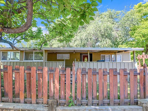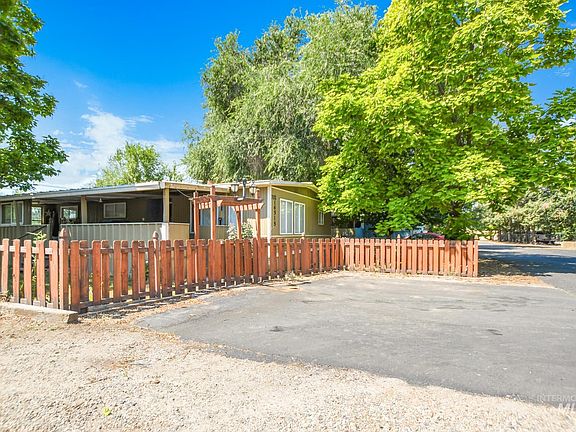 Manufactured home in a great location at the beginning of the neighborhood sitting on a corner lot with plenty of parking. Big trees surround the property offering shade with a fully fenced yard. Newer interior paint, flooring is 3 years old, furnace is 3 years old, remodeled bathroom within the last year. 2 remodeled bedrooms, New electric box. Large front porch. Land rent is $456 per month.