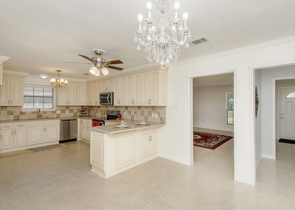 Completely restored with beauty! Enjoy the sleek tile flooring throughout this lovely home with masonry fireplace, beautiful new cabinetry and granite countertops in kitchen and baths. The large living room flows to the breakfast room with crystal chandelier, opening to the U-shaped kitchen. Off the kitchen is a great drop-off granite topped counterspace, perfect for phone chargers and booksacks! Fully fenced large backyard too. Great price in a revived neighborhood off O'neal, just minutes from I-12 and an abundance of shopping!