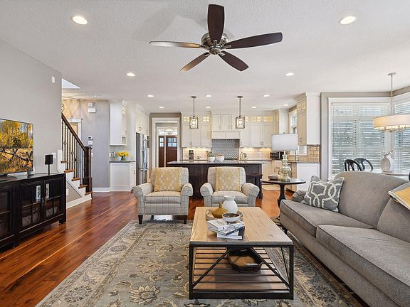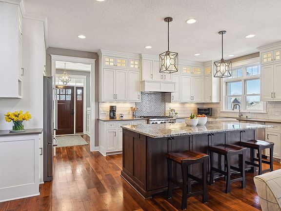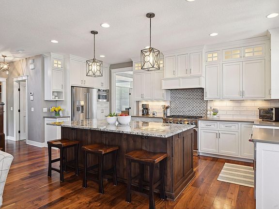Welcome to this impeccably maintained home, both inside&out!Character filled wrap around porch, along with maintenance free deck &shaded patio are perfect for entertaining or relaxation.On point design&detail throughout!Kitchen boasts huge center island with storage, timeless finishings&so much space. Window wrapped dinette for tranquil mealtime.Family room show cases stunning corner fireplace and wall of windows for natural light. Office with elegant French doors, transom&piano windows! Formal dining features custom built-ins combining style with storage!Luxurious primary suite offers tray ceiling, huge walk-in closet with custom storage units plus an impressive spa-like bath with double sinks, shower with bench&a cozy soaking tub.4 bedrooms on one level with 5th bedroom in lower level walk-out.Attractive wet bar with beverage refrigeratorµwave.Clean and oversized 3 car garage.Zone HVAC.Close to walking/bike trails, Fish Lake Park, shopping+Like NEW construction without the wait!