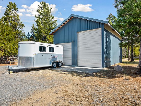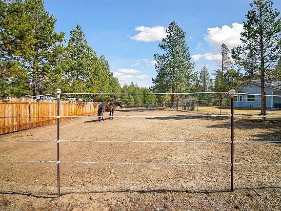 Bring your horses! Pristine Property with acreage near Quail Run Golf Course and the Little Deschutes River! Lovely home with an oversized attached garage plus a 24x36 shop/pole building with a horse stall all situated on a manicured 3.5+ acres. Enter into a spacious living room with vaulted ceilings and a cozy wood stove. Kitchen is open to the dining area and has SS appliances. Features include oak flooring and cabinets, heat pump A/C and recent updates to both bathrooms including a tiled walk-in shower in the primary bath. Covered front patio plus a back patio with access from both the dining area and the primary bedroom. Back patio spans the entire back length of the home to enjoy the wooded outdoors where wildlife abounds. Plenty of parking space on the 33x106 ft paved driveway. Shop has approx 14' and 10' tall door for your RV/boat parking. Fenced paddock and the back meadow area of the property is perfect for horses. Property is a must see!