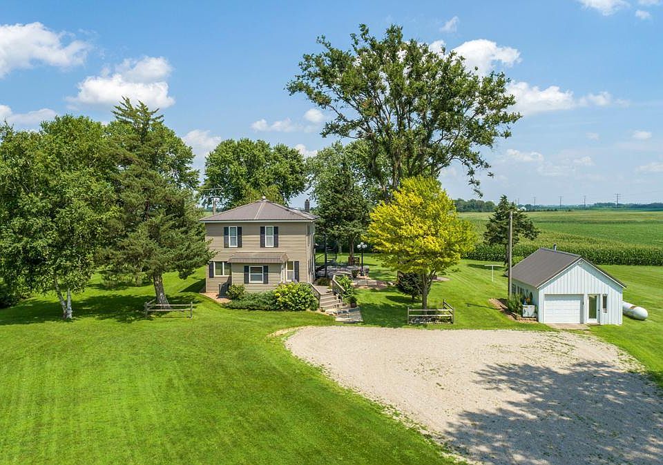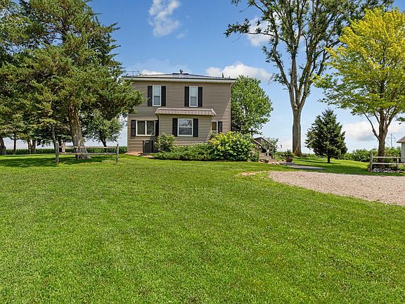 Quiet & serene... this 6.8 acre property is waiting for new owners. Sellers have been at the property 40+ years and lovingly cared foreverything and now it's time for someone else to enjoy. This tree lined property has a machine shed with bifold door, garden shed (next to a beautiful garden), detached oversized single stall garage, in addition to the home. Large grove of trees as well. This 3+ bedroom home has maintenance free siding & roof, updated deck, unique custom made spiral staircase. Head inside the home & find a nice mud room/drop zone as you enter. From there, head through the door into the kitchen with dining. There is a informal dining room (currently used as second living room), and spacious family room with fireplace and two patio doors & tons of natural light. Also on main floor is a bedroom & laundry, along with two bathrooms (one full & one 3/4). Upstairsyou will find two additional bedrooms, and a room used formerly for hair salon which has 1/2 bath, and could be converted to bedroom with it's own onsuite. Enjoy the summer weather & sunset from the spacious deck off family room area. Central A/C was added along with new furnace in 2018. Water heater new in 2022. Windows have ben updated throughout. Basement is unfinished. TONS of potential with this one, so check out this beautiful property and make it your new home. Agent is related to seller.