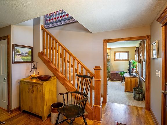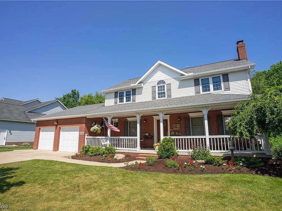 The one you've been waiting for and it’s the builder's home in NW Perry's Plymouth Knolls neighborhood! Beautiful brick and vinyl one-owner home with loads of character on a wooded lot and with a park-like backyard, plus 3rd stall garage or workshop with heat. The 38 x 8 covered front porch welcomes you into the lovely hardwood foyer and open stairwell. The cozy and spacious great room with authentic stone fireplace also includes built-in window seat with storage and French doors to the wonderful eat-in kitchen. Updated kitchen includes granite tops, farmhouse sink, huge walk-in pantry, newer appliances, center island, and is just off the mudroom with access to the laundry. 3 large bedrooms up including the 18 x 14 master with engineered wood floor, walk-in closet, bathroom with walk-in shower, claw-foot tub and double vanity. Bedroom 2 includes engineered wood floor & a Jack-n-Jill bath with bedroom 3. You’ll find a nicely finished rec room in the lower level along with a roughed-in f
