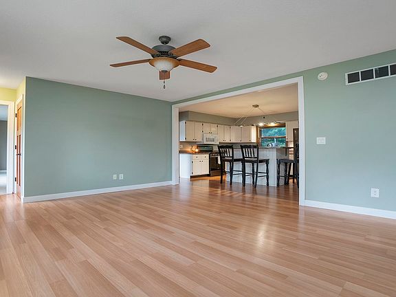 RANCH WITH RIVER ACCESS! This home is located on 3 lots, totaling .86 acres with Rock River access across the street. There are 3 bedrooms, 2 bathrooms and many updates within the last year including: central air, black stainless kitchen appliances, water softener and hot water heater. Kitchen boasts white cabinets, two pantry's along with an eat up, island that is open to the dining area. Spacious living room with gas fireplace also features a door to your private and large deck. Attached and oversized 3 car garage that is plumbed for a heater. Full basement with laundry and ready to be finished to create additional living space.