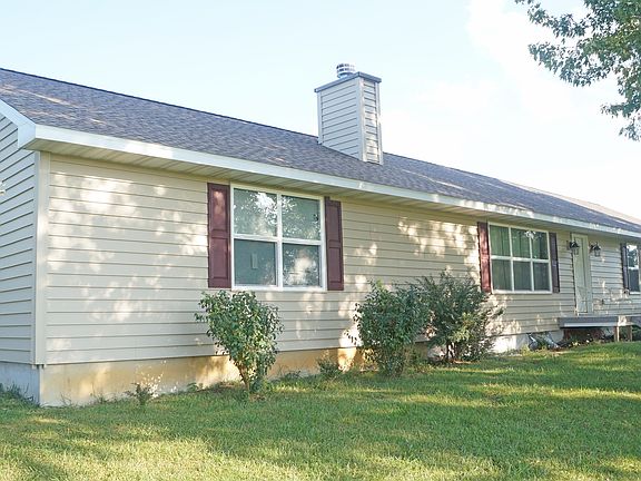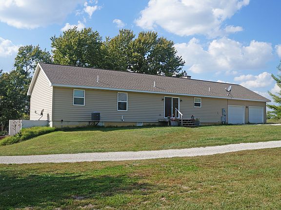 Quiet peaceful RANCH home on 5 acres with 50' x 30' metal bldg with concrete flr.& 3-10' doors-2 with elec. openers plus 48'x22' extension. Home built 4 yrs ago. DREAM kitchen-custom wood cabinets; pretty hard-surface counters & eat at bar, glasstop range, built in microwave;two lazy susans! onyx counters in baths. MBR & 2nd bedrm w/ walkin closets. Greatroom w/ wood burning fireplace. Closets, cabinets, storage galore! w/o bsmt w/ 1/2 bath stub. 50x30 bldg. has work benches, cabinets; wood burning stove.