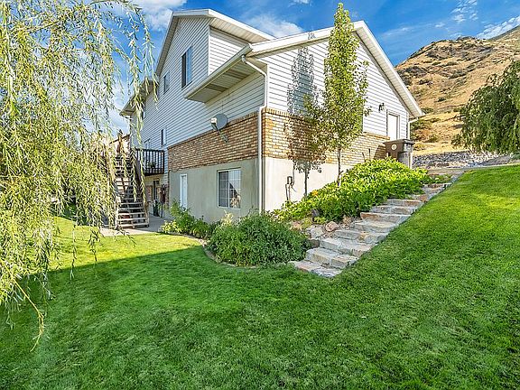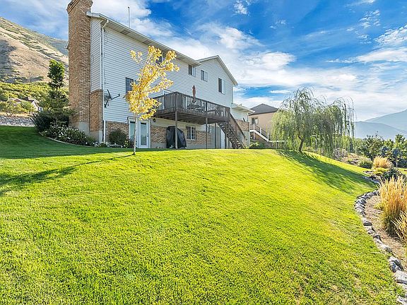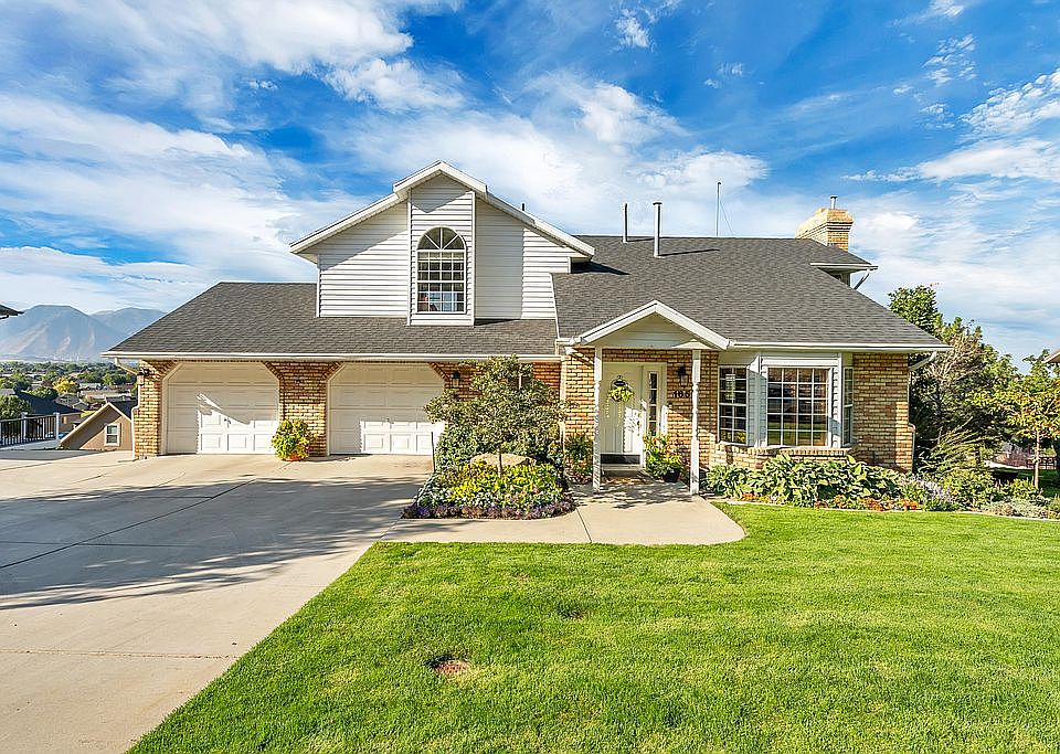 Beautiful 3 level home on the Springville East bench with mountain views from the front and amazing valley views and sunsets from the back! Custom cabinets throughout the home with granite countertops in the kitchen. Stainless steel appliances. Vaulted ceilings in living room and master bedroom. Wooden shutters on all windows on main floor. 600 square feet of storage in cement room under the garage. Walkout basement. Small kitchen in basement family room. Parking pad to the left of the driveway. Brick fireplace on main floor family room and gas fireplace in basement family room. Two gas furnaces and 2 air conditioners. New asphalt roof. Leaf filter gutters. Many upgrades and well maintained! Close to Springville Jr. High. **NO BUYER AGENT COMMISSION!!