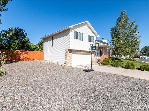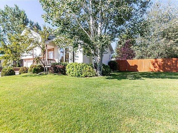 Very well maintained home near Skyview High School. Three bedrooms on the upper level and two bathrooms. Main level has a nice open feel with lots of natural light. Patio door off of the dining room goes out onto a covered patio where you can sit and enjoy the beautiful backyard. There are several trees in the backyard including peach, pear, cherry, apple, scarlet maple, and linden to name a few. Shed for storage, play area with playset and sandbox, and large garden area. Big living area in the basement could also be used as a 4th bedroom. Two car attached garage plus lots of room on the side for RV parking and there is RV hookup.