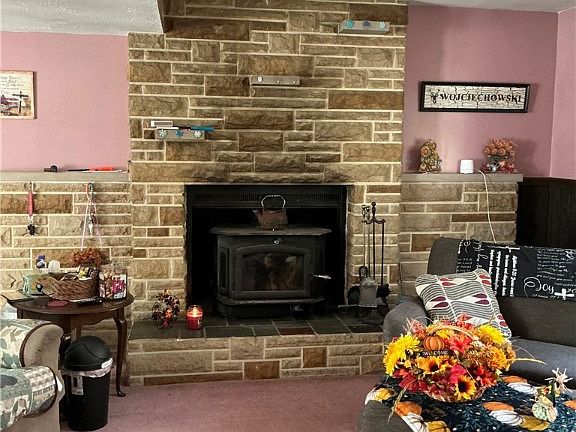 Large family roomFull acreGreat yardWood burnerAmple closet space
