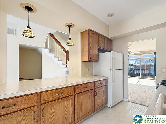 Welcome to this beautifully refreshed home, filled with abundant natural light and a warm, welcoming atmosphere. Thoughtfully updated with brand-new neutral wall-to-wall carpeting and fresh interior paint, this home is truly move-in ready. The spacious primary suite offers a private retreat with an ensuite bath featuring dual vanities and a relaxing Jacuzzi tub. With 3 bedrooms and 2.5 bathrooms, the layout provides comfortable and flexible living space. The main level features an oversized living room with a cozy gas fireplace, a convenient powder room, and a welcoming foyer with closet. The kitchen is equipped with newer appliances, including a stove, dishwasher, and microwave. Additional highlights include an oversized two-car garage, approximately 450 square feet of unfinished basement space, a well-maintained HVAC system, ceiling fans in every room, central air, and new rear window screens. Enjoy outdoor living on the newly updated Trex deck with freshly painted railings. Second-floor laundry includes washer, dryer, and utility sink. Conveniently located near Lehigh Valley Mall, Route 22, and Lehigh Valley International Airport. Schedule your showing today!