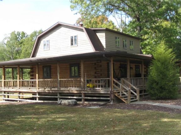 Gorgeous three Bedroom two and half bath log home with a full finished walkout basement on 30 acres. This home has a complete wrap around porch that overlooks this well-maintained property. The property is partially wooded with riding trails lots of pasture or hay fields. Large detached three stall garage with a 12 x 32 add on for storage, also a nice 12 x25 garden shed, and a large 46 x 39 building with utilities, new furnace, Four, 10 foot garage doors. This building has a second floor that could be finished as living quarters or used for storage. Too much to say about this listing so call for your tour today. Be sure check out pictures.