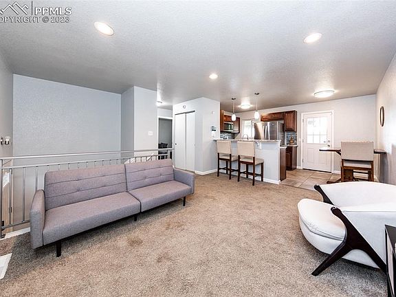 Updated, 4 bedroom home on large lot with mountain views that backs to open space!! Fantastic open floorplan with eat-in kitchen, breakfast bar, and spacious living room with lots of natural light! The upper level features 2 good sized bedrooms, full bath with tub/shower combo, and has a walk-out from kitchen onto a large covered deck. Lower level features 2 more large bedrooms and another updated bath with walk in shower. Laundry facilities are on this level as well as a walkout from the spacious family room to the large, fully fenced backyard that backs to open space! One car garage extends past the home to equal a two car (tandem) garage plus space for storage or workshop. The many updates in this home include maple cabinets, granite countertops in kitchen w/ full tile backsplash, stainless steel appliances, tile flooring in kitchens and bathrooms, and updated bathroom vanities and toilets. This home is move in ready with central air conditioning and all appliances included!! Convenient location close to schools, shopping, all military bases and I-25!