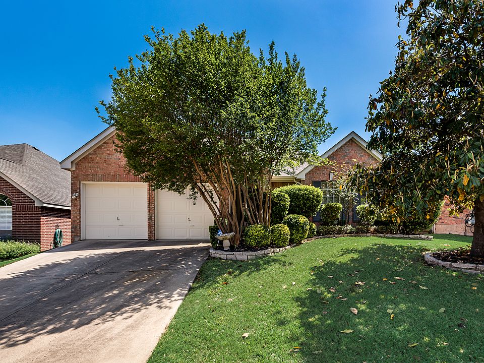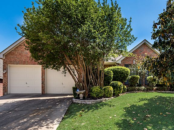 Beautifully landscaped Corinth brick home in Denton ISD with lots of natural light and large covered patio. Home features detailed finishings like crown moldings, chair rail, hardwoods, granite fireplace surround, built in shelves. Large open kitchen features tile floors, granite countertops, tile backsplash, SS appliances and a breakfast nook. Formal dining features real hardwood floors, chair rail details and chandelier. Master includes large WIC, Jacuzzi tub and separate tile shower.