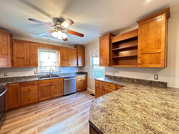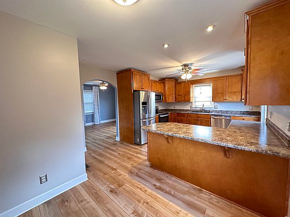 You’re going to fall for this 3-Story Charmer with 5 BR’s, 2 Full and 2 Half Bathrooms and a 1-Car Det Garage with a 3 room workshop on top! This home offers a total of 2450 sqft including your very own hidden “speakeasy” in the basement with a custom made bar, wine fridge, wall mount for your TV. You can get away for a bit and they’ll never know where you’re at! The Kitchen in this home is spectacular with lots of cabinetry, breakfast bar area, pantry and lots of countertop space. Off the Kitchen you’ll find the Family Room with built-in bookshelves and a Half Bath. There’s a super nice formal Dining Room with 2 built-in Hutch’s and also a window seat with storage. The Living Room is spacious with lots of natural light. The 2nd floor has 4 BR’s & 2 Bathrooms. The Primary BR has a walk-in closet and a full bath with a walk-in shower. The 3rd floor has the 5th BR or Game Room with a Half Bath. Outback you can enjoy rest and relaxation with the kiddos and family pets in the fenced in backyard and covered porch area!