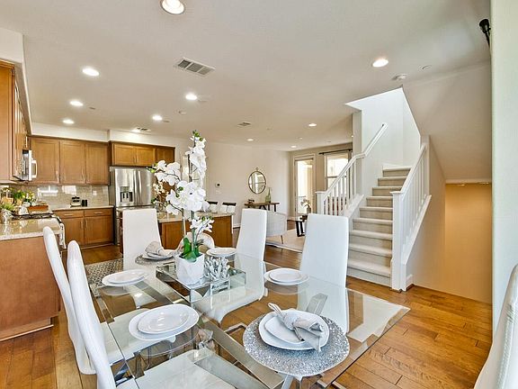 Welcome to this highly-sought after pristine End Unit Townhome nestled in the most desirable location. Built in 2013, this beautiful 3 bedrooms/3 full bathrooms features an open concept gourmet chef's kitchen with large island with sink, stainless appliances and cherry oak cabinets with tons of storage. Perfect layout dining room and expansive living room leading to a spacious balcony for entertaining. Both primary rooms suites upstairs have walk-in closets and full bathrooms with a separate soaking tub after a long day! The 3rd bedroom share another full bathroom, ideal for guests or an office. Tankless water heater, top of the line water softener owned, inside side by side washer/dryer, new interior paint, new carpet, 2 car garage, tons of natural light and storage space, high ceiling. Great school! Walk to BART/VTA, Great Mall, parks, farmer market. Community has Fiber Internet connection, playground and walking trails. Easy access to FWY 680/237/880, local shops and restaurants.