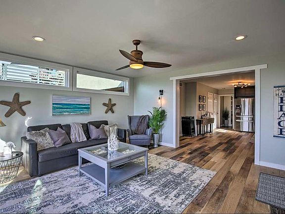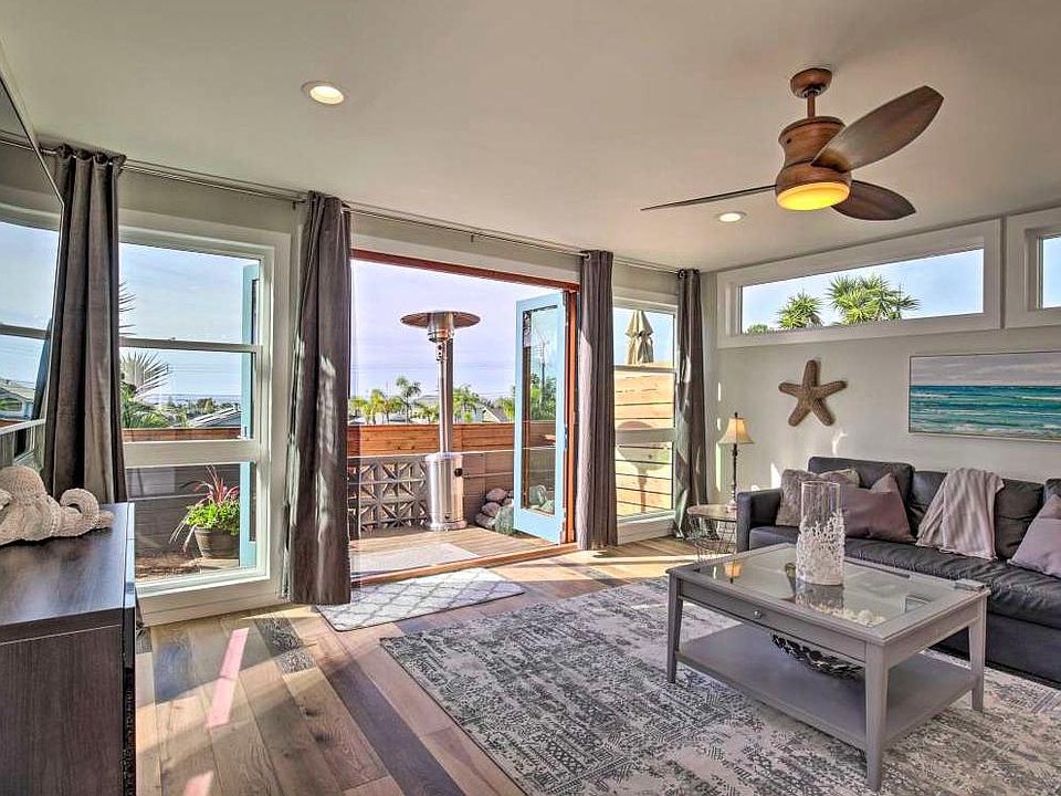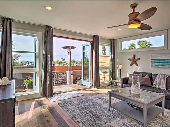 Absolutely gorgeous ocean view, newly built granny flat. Very light and bright with high end fixtures and finishes. Stainless steel appliances, marble look quartz countertops, extra deep custom Ruvati sink with built in cutting board, washer/dryer, and air conditioning. Second bedroom has built in bunk beds, chest of drawers, and internet TV. Master bedroom has queen size murphy bed and internet TV. Fully furnished with everything you need including all kitchen, bathroom, and bedroom supplies. Custom bi-fold glass doors to a small back deck with seating and heater. Enjoy beautiful sunsets from your living room and live the Cardiff lifestyle. Granny flat is attached to main house with a private separate entrance and it's own mail service/box. Pets considered on a case by case basis. All utilities cable, internet, gas and electric included