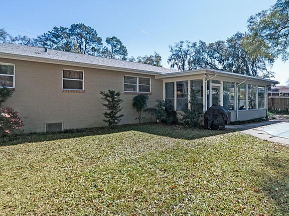 Beautiful well maintained pool home with stately trees. Hardwood strip floors in LR/DR, Foyer, Halls, Den, 2BR's and under MBR new carpet. Exceptional lay out for privacy and entertaining. Huge 24 x 16.6 glass sunroom leads out to an amazing view of the backyard and pool area. Pool includes durable safety cover that can keep pool clean all year.(see pics) New Roof (see documents for warranty info). Trane 19 seer A/C unit with Clean Effects Air filter. Storage shed 10 x 12 remains with property. Home includes a large formal LR & DR. A wall could easily be put up between the LR & DR and accommodate a great location for a 4th BR w/ existing half bath beside. Home has been inspected and repairs done. Clean WDO. A must see!