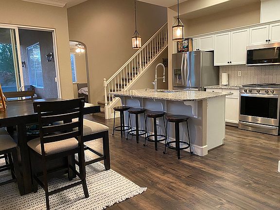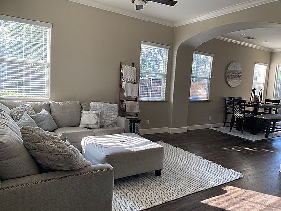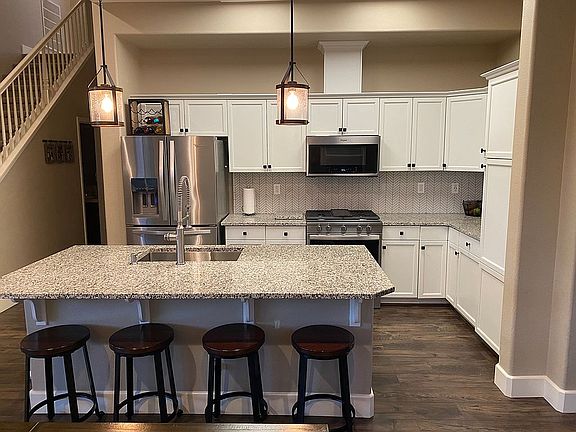 Welcome to 1652 Moore! This 4 bedroom 2.5 bath home is located on a corner lot in the beautifully master-planned Harlan Ranch neighborhood. Upon entry, the living room is charmed by a large, inviting fireplace while Pergo laminate flooring guides you throughout the first story of the home. The kitchen is captivated by granite countertops, updated lighting, chevron backsplash, Whirlpool appliances w/ wifi capability, and a gooseneck faucet. Walking past the kitchen, a media room is tucked away behind the stairs giving the space a cozy and quaint feel while also having the option to double as a fourth bedroom. Down the hall one will find the powder and laundry room right around the corner from the master bedroom, providing convenience for any guest. The master bedroom is equipped with a full bath, double sinks, and walk-in closet. Upstairs two more bedrooms share a full bath. Outside, a covered patio complete with a fan and lights offer an optimal outdoor living space and BBQ area.