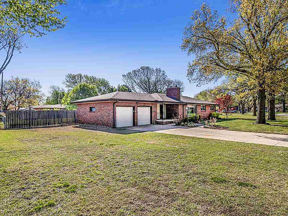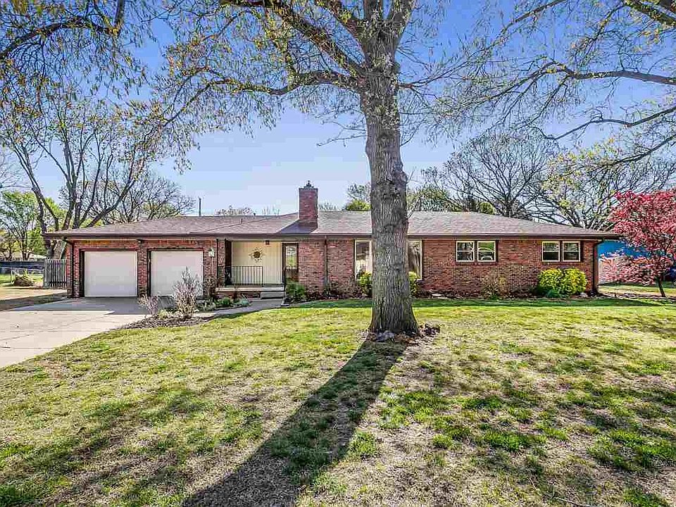 Don't miss this beautifully updated 3 bedroom 2 bath home in west Wichita. HVAC *new* in 2019 and 50 gallon water heater *new* in 2017! The all-brick home is situated on a large 0.39 acre lot with two car attached garage. Inside you'll notice the brick fireplace, refinished hardwood floors, spacious living room and formal dining room, knockdown ceilings, and large picture windows. The kitchen/informal dining room is updated with granite countertops, tile floors, and the appliances are included. Main floor laundry, three bedrooms, and 2 baths round out the first level. Check out the retro tile in the main bathroom! Downstairs, find a decorative fireplace and sitting area, dry bar (mini fridge stays), and entertainment area with surround sound hookups. The rest of the basement is devoted to storage that could double as a workshop area or hobby room. Take the french doors from the formal dining room to the patio out back. The completely fenced backyard is expansive. The shed will keep your tools and toys tidy, and there's plenty of room to garden, watch the kids or pets play, and enjoy life!
