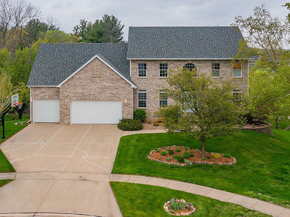 Welcome to your serene home nestled in a quiet cul-de-sac conveniently located in Clive near the Greenbelt, Campbell Park and ALL the attractions—where comfort, convenience and nature come together. Set on nearly half an acre with a tree-line backdrop, this two-story home has over 4600 sq ft of finish with gorgeously renovated spaces. Add in the outdoor amenities and this home feels like a dream come true. Inside, enjoy a bright and airy four-season room that provides year-round natural light, fresh interior paint throughout, custom rough sawn oak cabinetry in the kitchen and upstairs bathrooms, and a double-sided gas fireplace connecting the den/study and living room. There are 4 bedrooms upstairs including a spacious primary suite with its own fireplace and a fully updated custom bathroom. Walk-out lower level has a ¾ bath, family room and generous storage. Major updates include a new Timbertech deck (2020), new roof (2017), and new HVAC (2023). With quick access to I-235, I-35, and I-80—and (less than) minutes from shopping, dining, medical facilities, and more—this home checks every box for location, comfort, and style. West Des Moines schools.