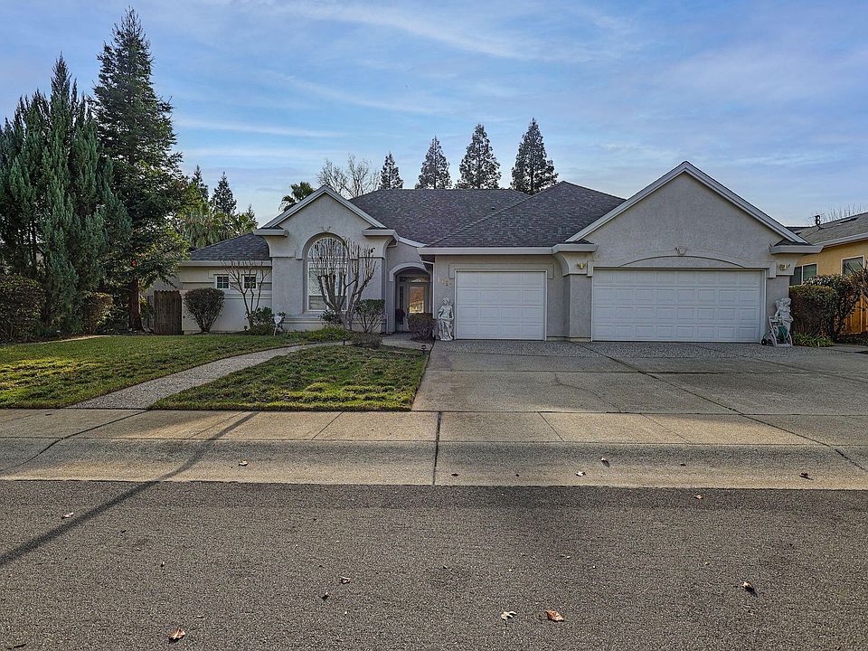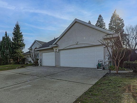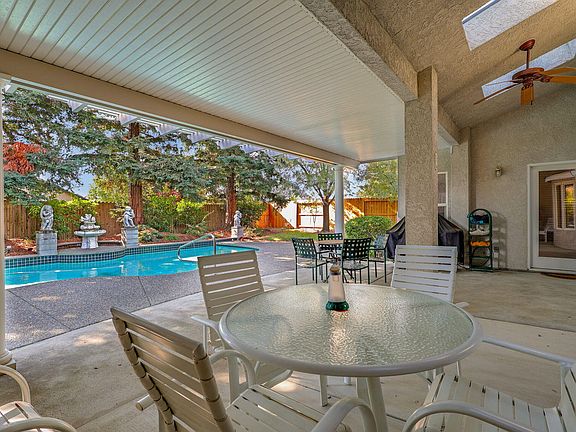 Elegant custom home with an oversized patio cover overlooking a beautiful solar heated pool. Newer roof, fully owned solar system, each bedroom has its own private bathroom and the formal dining room could be a beautiful office area. Owner's were told the original builder built this home for his daughter. Incredibly spacious master bedroom with a jetted tub, huge walk-in shower, walk-in closet, beautiful moldings and vaulted ceilings. Enjoy the gorgeous cathedral vaulted ceilings with custom crown molding throughout, hardwood floors and kitchen pantry. Love the indoor laundry room, 3 car garage, gorgeous barrel ceiling in the front bedroom, walk in closet in the other guest bedroom, built in desk area, double ovens, gas BBQ hookups and so much more!