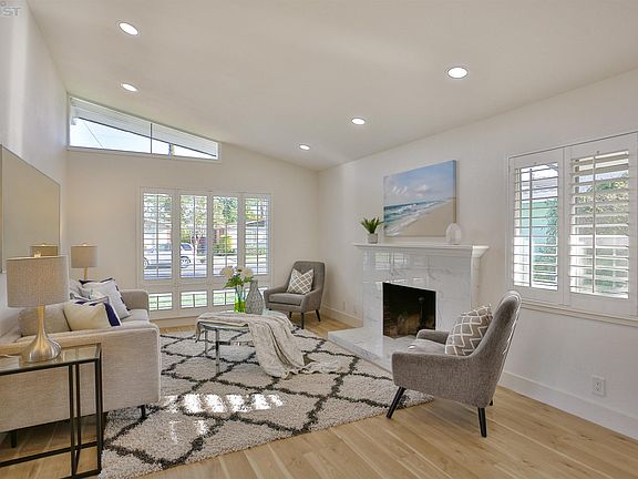 Bright and airy home within mins to downtown. Formal living room with cathedral ceililng. Wood burning fireplace with new tile surrounds and mantel. Recessed ceiling lights in living, dining rm and kitchen. Modern kitchen with new electric smooth top range oven, new Samsung microwave and dishwasher. Quartz kitchen counter and backsplash. New dual pane windows and slider. Wood window shutters. New laminated floors. New master bathroom with new tiled walls, shower door, vanities, and fixtures. Updated hall bath with skylight. New front and back lawn. Finished two car garage with opener. Electrical redone in 2016. Both gas and 220 laundry hookups. Big backyard. Close to shopping, restaurants, freeway access, wineries. Won't last!