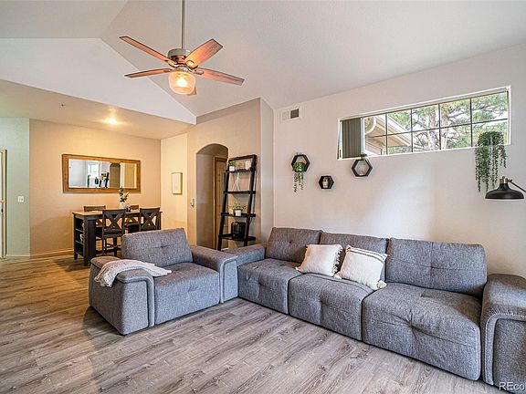 If you’re looking for uncomplicated and carefree suburban living, this attractive 1 bedroom, 1 bath condo in southwest Littleton is sure to fit your needs. High on character and low on maintenance, this home features 705 square feet of living space and provides easy access to the foothills and mountains. You’ll savor the gas fireplace this fall with its lovely granite frame and mantle, and the ceiling fan in the living room helps circulate the warm air. The top floor location gives you the benefit of vaulted ceilings, creating an airy, spacious feel. Relax on the outdoor balcony and enjoy access to a handy storage closet. There is warm wood laminate flooring throughout, separate dining area and a pleasant kitchen with a double sink and stainless steel appliances. The cozy bedroom features a walk-in closet and plenty of space for extra furniture. The home also includes a handy stacked washer/dryer and RARE DETACHED GARAGE. As a homeowner in the Pinnacle at Highline complex, you’ll have use of an outdoor swimming pool and a fitness center in the clubhouse. With its outstanding location right next to the High Line Canal, explore the southwest Denver metro area on one of the metro area’s most popular trails. Within a 5 minute drive, you can visit Chatfield Reservoir, Highlands Ranch Golf Club, fabulous restaurants and escape to your favorite recreation areas via Santa Fe, County Line or C470.