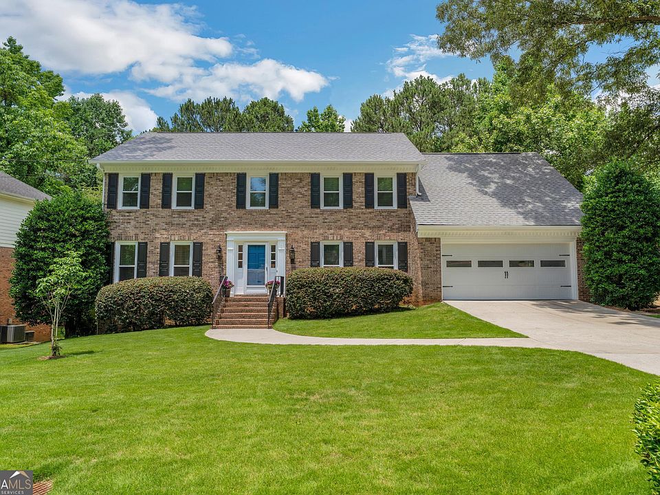 Spend your Summers poolside by your own gorgeous private pool. Fantastic 3 finished levels in Dunwoody's Austion Elementary. Beautifully appointed brick two story home with a finished basement. Hardwood floors throughout the main level and in all bedrooms. Stunning kitchen with quartz counters and island. Tons of cabinet and counter space. Fireside den and large dining room. This home is loaded with lots of natural light in the living areas and bedrooms. The second floor features a large master suite with sitting area, luxurious master bath, and spacious master closet with custom Elfa shelving system. Plus 3 additional bedrooms and a large upstairs bonus room. Front and back stairs, too! The finished terrace level has a large rec area, second fireplace, wet bar (great for when you are outback and poolside), mirrored exercise room, and a full bath. Terrace level could easily be made into an in-law, or teen suite. Out in back is a main level screened porch and grilling deck, covered lower patio, and the beautiful pool. There is also an EV charging station in the garage.