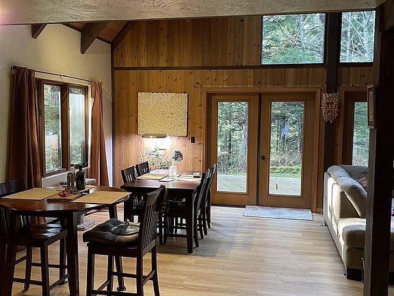 Stunning one acre private lot with three buildings. Main house is 3B/2B @ 1,941 SF and the detached apartment/cabin building is 1B/1B @ 572 SF and has its own washer/dryer and utility metering. There is a 504 SF A-Frame out building that has power and heat and could be used for artist studio, exercise room, extra storage. The main house boasts large windows and vaulted ceilings showcasing its traditional A-frame chalet construction. Tons of natural light with the added sky lights. Radiant in-floor heat was added in 2013 along with many other improvements (see Disclosure). The house and property provide an abundance of storage. There's a bonus loft in main house that could be used as a playroom and/or home office. Gas range and large deck with hot tub make this an entertainers dream. Property features a private driveway with custom rock retaining wall showcasing the various landscapesincluding over 100 perennial flower varieties, raspberry, red huckleberry, blueberry, and salmonberry patches!